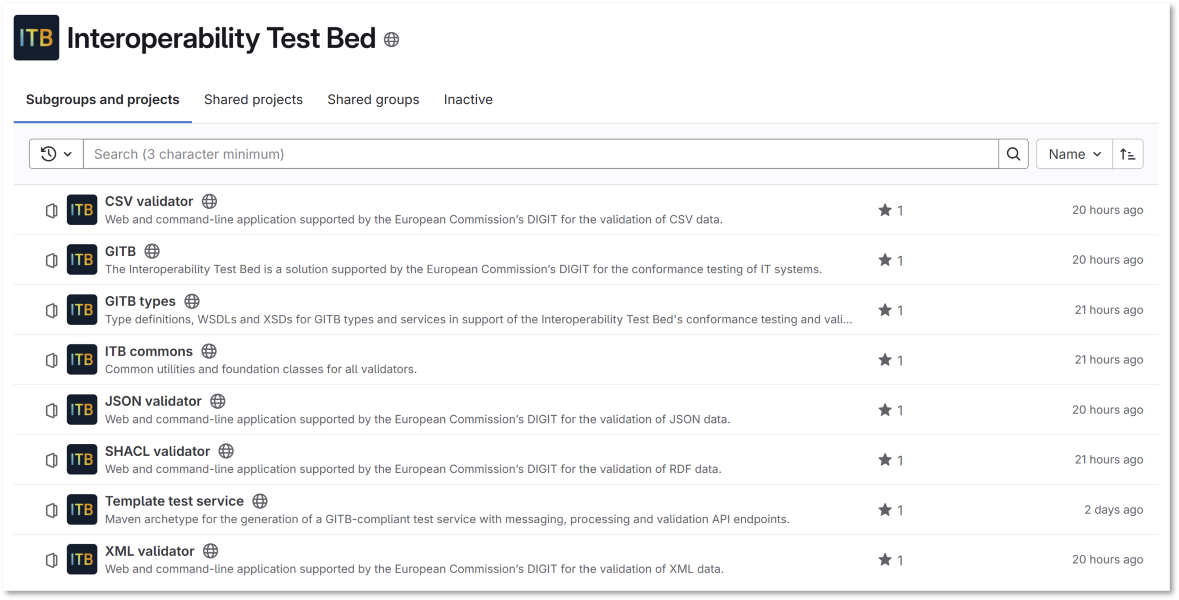 Angesichts der zunehmenden Zahl von Open-Source-Lösungen, die von den europäischen Institutionen gepflegt werden, stellte die Europäische Kommission 2022 den Dienst code.europa.eu als Alternative zu GitHub für die Veröffentlichung solcher Open-Source-Software zur Verfügung. Seit August 2025 verwendet das ITB auch code.europa.eu, um seine wichtigste Open-Source-Software zu veröffentlichen, insbesondere die Repositories der GITB-Test Bed-Software und ihrer XML-, RDF-, JSON- und CSV-Validatoren.
