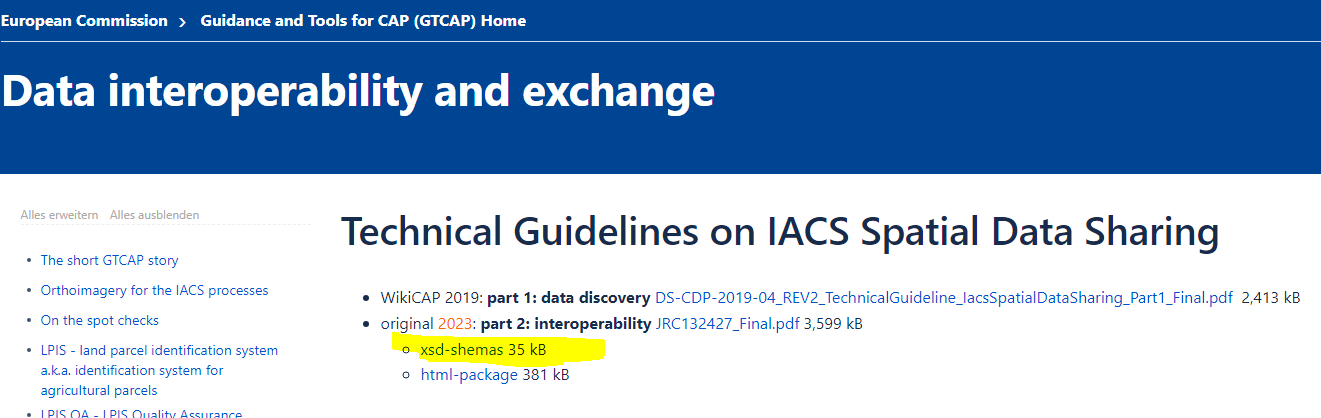 Die XSD-Schemata LPIS und GSA gibt es auf folgender Internetseite:
