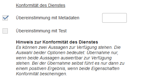 Im unteren Teil der Seite Aktualisierung aus Ableitung befindet sich der Überblick zur Konformität des Dienstes.