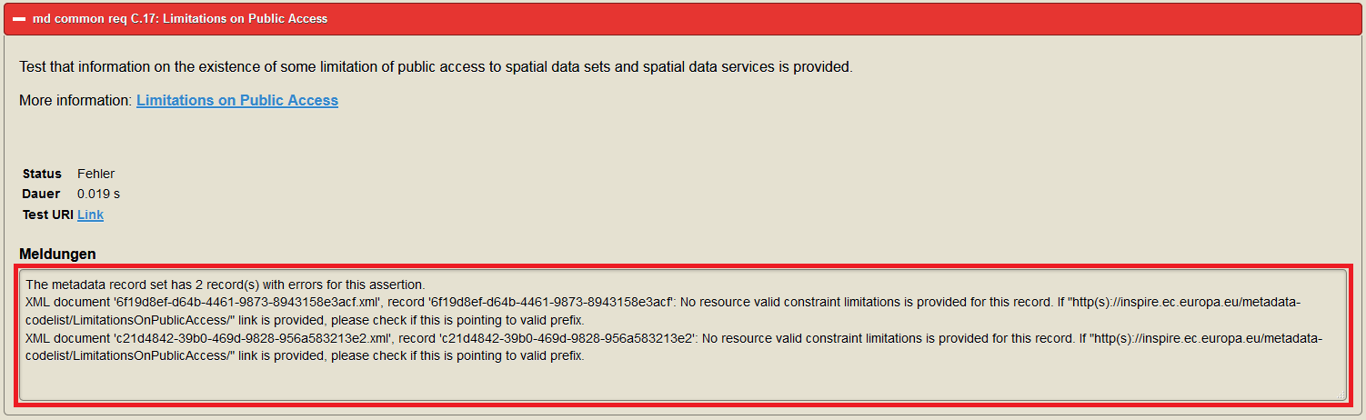 Testen von allen INSPIRE-Datensatz-Metadatensätzen eines Katalogs